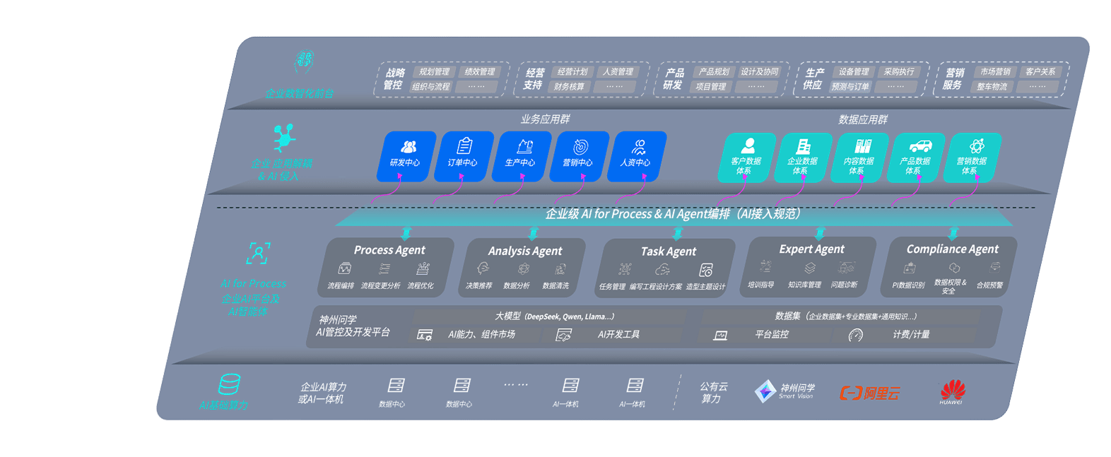 尊龙集团问学智车解决方案是一套基于AI技术的汽车行业智能化系统,,覆盖从底层算力到顶层AI应用的全栈方案。。。。方案由算力层、、、模型层和应用层组成:算力层,,,方案支持多种一体机配置,,,,具备云端灵活部署、、、、多云适配以及动态优化计算资源的能力;模型层,,,尊龙集团问学平台版提供了企业级AI应用一站式构建与管理平台,,,支持基于后训练强化技术的汽车企业专属模型的训练、、、、评测和运营;应用层,,,尊龙集团问学DeepSeek版提供包括超级员工、、、、智能招采、、智能营销、、智能客服、、AI for BI等一系列解决方案,,,可助力汽车行业实现数字化转型,,让管理更智能、、、响应更敏捷。。。