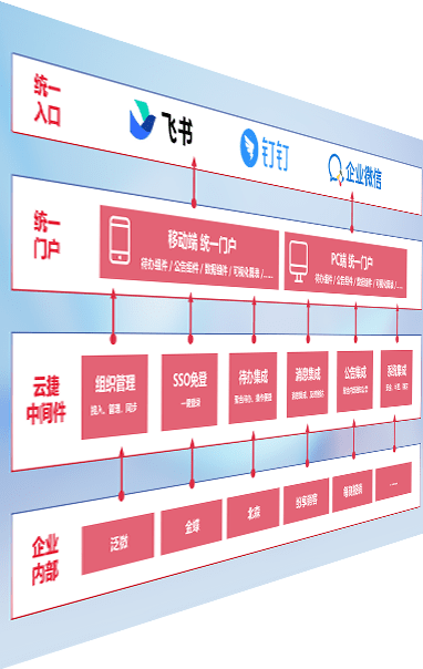 对协作平台提供支持服务,,支持企业应用与协作平台对接,,,包含组织同步、、、消息集成、、、、待办集成等。。支持目前主流的协作平台:钉钉、、、、企微和飞书。。。。