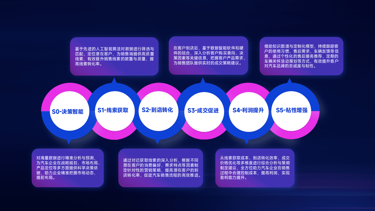 通过拓宽潜在客户来源、、、优化线索分配并提高到店转化率,,,以增强销售效率。。同时,,,,利用线索数据不断优化分析模型,,,有效提升转化率,,扩大营销影响力。。。。